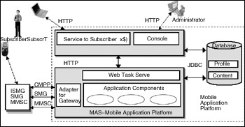 移動應(yīng)用平臺(Mobile Application Platform,以下簡稱平臺)主要的使用角色只有兩種:注冊用戶(Subscriber)和管理維護人員(Administrator)。注冊用戶是平臺的受眾群體,通過各種移動設(shè)備使用平臺所提供的多種應(yīng)用。WWW服務(wù)作為輔助工具,方便了注冊用戶的訂閱、點播及了解更多的應(yīng)用信息。平臺需要各種管理維護人員進行日常的管理和維護,除了通過專有通信方式外,WWW服務(wù)是必不可少的、實用的手段。