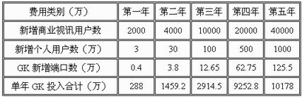 根據(jù)上表,相應的GK建設投入費用估算如下: