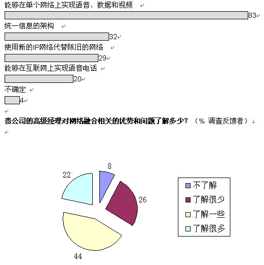 融合網絡已經成為現(xiàn)實。在經濟學家信息部展開的全球調查中,103位高級經理中超過半數(shù)的人投票表示,他們的企業(yè)已經開始實施IP網絡融合,還有26%表示他們將計劃部署。