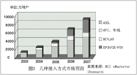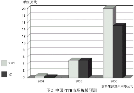 2004年初,中國ADSL用戶已增至1915萬戶,年內(nèi)將突破2000萬大關(guān)。正當(dāng)ADSL大行其道時(shí),運(yùn)營商已經(jīng)入手,開始試用部分FTTH產(chǎn)品。
