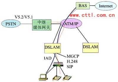 基于Ethernet接入提供分組話音歸根到底仍然是VoIP的解決方案,利用IAD支持H.248或SIP協(xié)議,可以順利地實現(xiàn)網(wǎng)絡(luò)的演進。VoIP