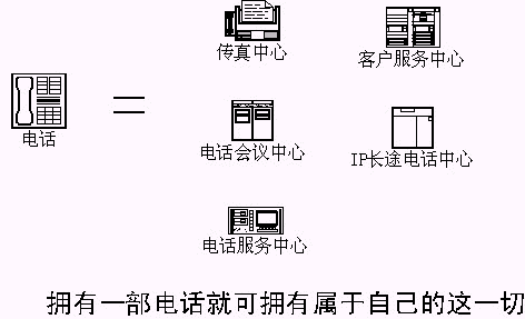 該方法的實(shí)施,可以讓每一個(gè)電話和強(qiáng)大的CTI系統(tǒng)聯(lián)系,一部電話將變成語音系統(tǒng)、傳真系統(tǒng)、電話會議系統(tǒng)、……。擁有這一切用戶只需要支付呼叫轉(zhuǎn)移的費(fèi)用?梢栽O(shè)想,以后開辦公司,只要申請電話,擁有ADSL上網(wǎng)的電腦,用戶在辦公室、在家,打開電腦,單擊進(jìn)入自己的語音系統(tǒng)、會議系統(tǒng),宣傳公司,召開會議,發(fā)送傳真。公司擁有、使用自己的、電信級的CTI系統(tǒng);所有CTI應(yīng)用系統(tǒng)的開發(fā),語音部分完全由電話接入服務(wù)商提供,……。