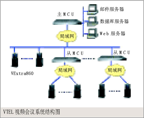 。。網(wǎng)絡(luò)拓?fù)鋱D如右下圖所示,在中心會(huì)場(chǎng)配置的VTEL的Meta 5000 MCU,不僅可以直接接入兩路本地主會(huì)場(chǎng)的視頻、音頻,還可以接入分會(huì)場(chǎng)的獨(dú)立會(huì)議電視終端。同時(shí),還能接入要級(jí)聯(lián)的Meta