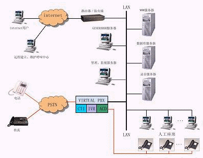 呼叫中心服務器是系統(tǒng)的主要組成部分,起著橋梁的作用,其用戶通過PSTN與業(yè)務系統(tǒng)及人工坐席相連,其具體功能如下: