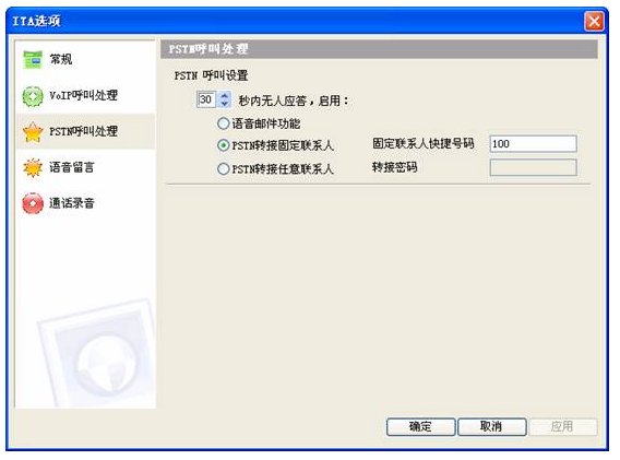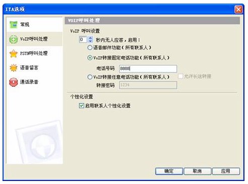 現(xiàn)在你的安裝工作已經(jīng)完成了,如果有 Skype客戶撥打cn13020063118就會(huì)聽到“歡迎致電某某公司,產(chǎn)品咨詢請(qǐng)撥15,產(chǎn)品訂購(gòu)請(qǐng)撥16,人工服務(wù)請(qǐng)撥0”的語(yǔ)音提示(在ITA軟件設(shè)定的語(yǔ)音)。