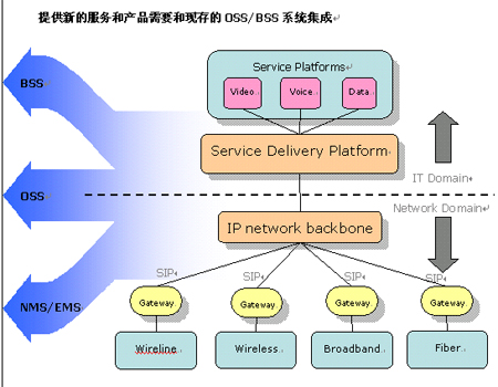 沒有一家電信公司可以花費數(shù)年時間來重新開發(fā)新的服務(wù),服務(wù)提供商在舊的計費,開通,網(wǎng)管系統(tǒng)上已經(jīng)進行了大量的投資,現(xiàn)存的大量關(guān)鍵系統(tǒng)必須得以重用并平滑過渡到三網(wǎng)合一時代。