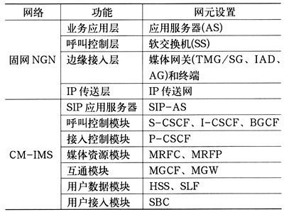 表1 固網(wǎng)NGN與CM-IMS網(wǎng)元/功能模塊比較