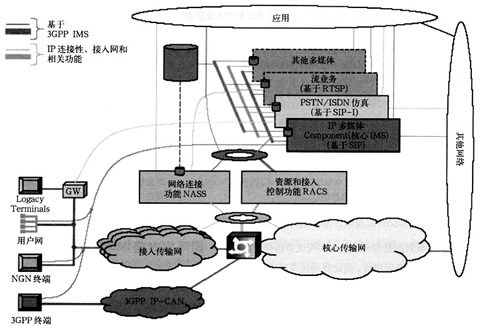 業(yè)務(wù)層包括下面的元素:PSTN/ISDN模擬子系統(tǒng)(PSS)即IMS核心子系統(tǒng)、PSTN/ISDN仿真子系統(tǒng)(PES)、其他多媒體子系統(tǒng)(如流媒體子系統(tǒng)、內(nèi)容多播子系統(tǒng)等)和應(yīng)用以及可以用于多個子系統(tǒng)的公共元素(如接入應(yīng)用、計費功能、用戶屬性管理、安全管理和路由管理等);傳送層為用戶終端提供了基本的IP連接的能力,其中的網(wǎng)絡(luò)附屬子系統(tǒng)(NASS)和資源認(rèn)證控制子系統(tǒng)(RACS)屏蔽了IP層以下的接入網(wǎng)/核心網(wǎng)所使用的傳送技術(shù),給固網(wǎng)NGN用戶終端提供了IP的連續(xù)性。