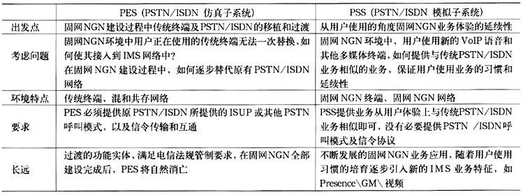 業(yè)務(wù)層的PSS和PES子系統(tǒng)針對不同的終端類型和業(yè)務(wù)需求而設(shè)計。使用PSS和PES主要目的是使寬窄帶域完全分離,即SIP用戶通過PSS子系統(tǒng)完成接入和業(yè)務(wù)提供,窄帶用戶通過PES子系統(tǒng)完成接入和業(yè)務(wù)提供。具體比較如表2所示。