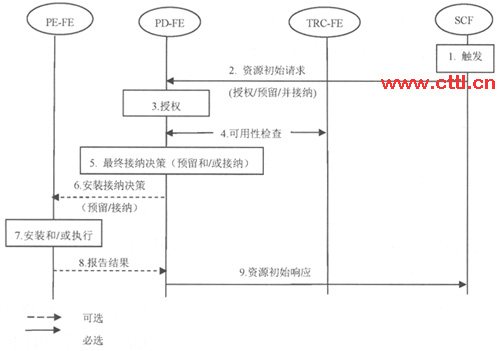 在CPE發(fā)起資源請求的場景下,經過上面第3步授權后(見圖2),PD-FE將向SCF返回授權結果。隨后的流程可以描述如下。
