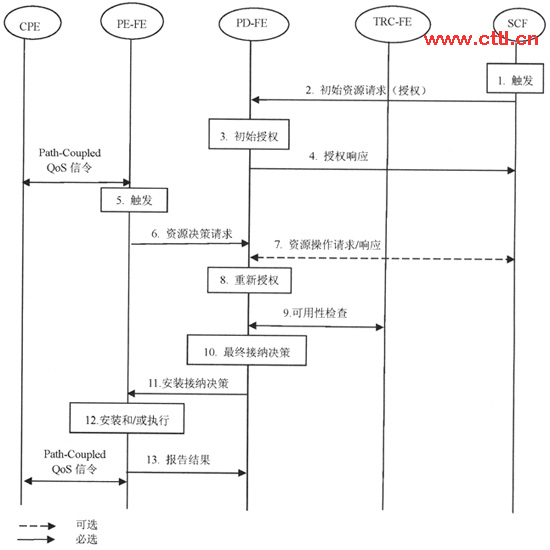 圖3 CPE發(fā)起QoS控制的授權、預留和接納流程