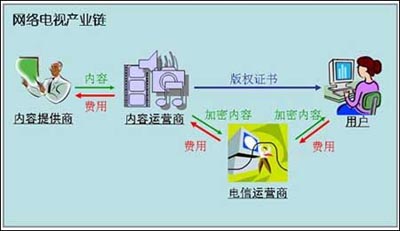 對于內容提供商,內容是它的核心資產(chǎn),這個資產(chǎn)在廣大的電視臺目前實現(xiàn)價值的途徑有兩個,一個是通過電視播出吸引觀眾,間接地通過廣告費的形式實現(xiàn)價值;另外一個途徑是電視作品的買賣。在內容數(shù)字化以后,很容易擴散和傳播,給內容提供商也帶來了無限的煩惱,一方面要銷售這些數(shù)字內容,一方面去苦惱如何保護它們不被非法傳播。除了法律的手段以外,內容保護(CP)技術從技術層面上給ICP們以有力的保障。