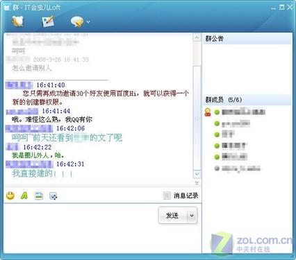 在群聊的過程中兩款軟件都各特色。百度Hi的特色是當用戶向群中一個不是自己好友的人發(fā)送信息時,該用戶會在百度網(wǎng)頁短信息中可以收到消息,此項功能十分適合上班時不能打開聊天軟件的朋友使用。Lava則是將群功能體現(xiàn)的更加強大些,除了消息發(fā)送外可以建立屬于群部落的文件庫,就是這個部落的藏寶室,有什么好東東都可以放進去,簡直就是超大的網(wǎng)絡硬盤。(圖9、圖10)