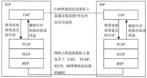 移動(dòng)智能網(wǎng)應(yīng)用部分(CAP)是遠(yuǎn)程操作服務(wù)單元(ROSE),ROSE規(guī)程包括在TCAP成份子層中,并作為單位數(shù)據(jù)(UDT)放在SCCP中傳送。我國CAP是建立在以TCAP和SCCP為基礎(chǔ)的No.7信令網(wǎng)傳送的,CAP受限于SSP-SCP、SCP-IP之間的接口規(guī)范。
