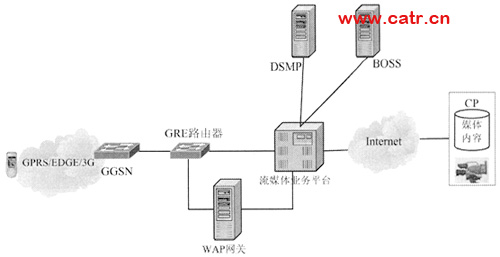 圖1 利用流媒體技術(shù)實(shí)現(xiàn)的手機(jī)電視業(yè)務(wù)網(wǎng)絡(luò)結(jié)構(gòu)