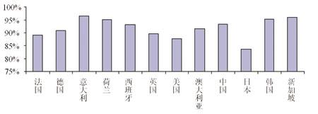 由于所調(diào)查的大多數(shù)是成熟市場(chǎng),因此大多數(shù)國(guó)家的移動(dòng)電話普及率超過75%。其中,普及率超過90%意味著有的用戶可能有幾張SIM卡。