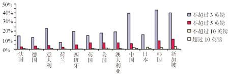 在那些少數(shù)愿意購(gòu)買手機(jī)電視和電影大片的被調(diào)查者中,大部分人愿意每月支付不超過3英鎊的費(fèi)用。其中,中國(guó)、韓國(guó)、新加坡的支付意愿較高,歐洲的意大利其次,其23%的被調(diào)查者也表示愿意每月支付不超過3英鎊的費(fèi)用。愿意每月支付3英鎊以上的用戶非常少,在韓國(guó)、日本、新加坡這樣的國(guó)家,也只有不到11%的人表示愿意每月支付不超過5英鎊的費(fèi)用。(見圖6)