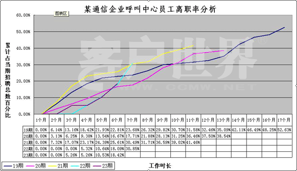 圖一:某通信集團(tuán)一家呼叫中心2007年—2008年員工離職數(shù)據(jù)