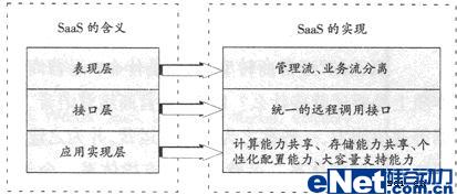 圖1 SaaS模式下各層的含義及實(shí)現(xiàn)