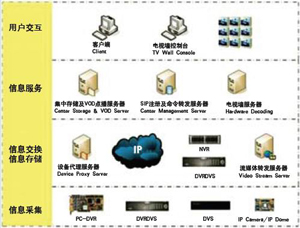 信息交換指將采集到的信息使用標(biāo)準(zhǔn)協(xié)議進(jìn)行封裝,通過(guò)IP網(wǎng)絡(luò)將封裝的信息交換到目標(biāo)主機(jī),目標(biāo)主機(jī)對(duì)信息進(jìn)行處理,以便提供各類信息服務(wù)功能,如集中存儲(chǔ)(NVR)、信息檢索、VOD