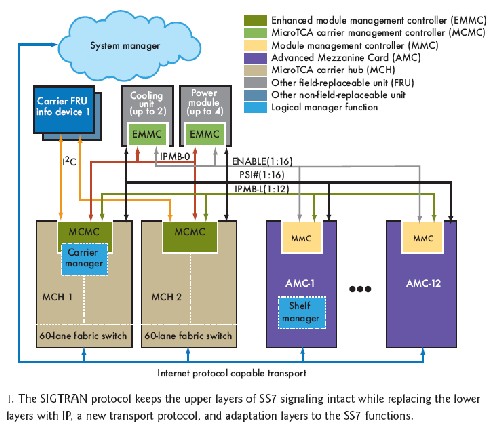 信令網(wǎng)關(guān)用于橋接下一代IP網(wǎng)絡(luò)和傳統(tǒng)的包交換電話網(wǎng)絡(luò)(PSTN),處理的主要是呼叫建立、控制和計(jì)費(fèi)等信號(hào)。網(wǎng)關(guān)設(shè)計(jì)要求融合IP協(xié)議、傳統(tǒng)的交換電路協(xié)議、操作系統(tǒng)、管理以及高可靠性的硬件系統(tǒng)設(shè)計(jì)。MicroTCA、AdvancedMC硬件和現(xiàn)成軟件可以提供構(gòu)建模塊用于開發(fā)獨(dú)立的信令網(wǎng)關(guān)設(shè)計(jì),這樣設(shè)計(jì)出來的網(wǎng)關(guān)很容易隨著IP電話需求的增加而進(jìn)一步擴(kuò)展。