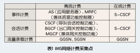 1.計費采集點多,分散在網(wǎng)絡(luò)各層面。由表1可以看出,IMS的分層體系使得計費采集點和控制點非常多:流量承載計費采集點在承載層、會話計費采集點在控制層、事件計費采集點在業(yè)務(wù)層。