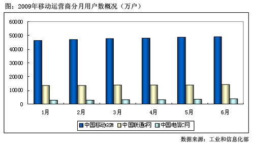 圖:2009年移動(dòng)運(yùn)營(yíng)商分月用戶數(shù)概況