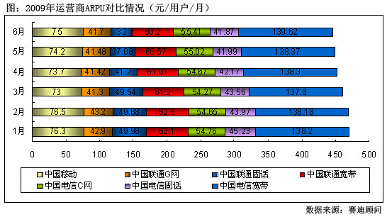 圖:2009年運(yùn)營(yíng)商ARPU對(duì)比情況