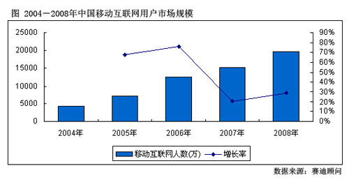 圖:2004-2008年中國(guó)移動(dòng)互聯(lián)網(wǎng)用戶市場(chǎng)規(guī)模