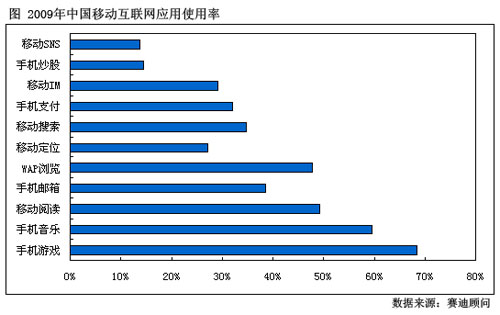 圖:2009年中國(guó)移動(dòng)互聯(lián)網(wǎng)應(yīng)用使用率
