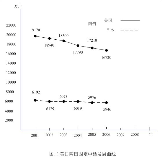 〔3〕大約有2%的美國家庭沒有電話。IBB咨詢公司資深分析師表示,「美國擁有大量愛講電話的人,可以隨處打電話正是美國人熱衷的事情。」 大型傳統(tǒng)電話公司如AT&T、威瑞森(Verizon),受到美國人的這一偏好的影響,移動通信業(yè)務(wù)現(xiàn)都已經(jīng)超過了他們原本的核心業(yè)務(wù)(固定電話)。據(jù)桑福.伯恩斯坦公司的調(diào)查顯示,紐約地區(qū)固定電話的數(shù)量,從2000年以來已經(jīng)下降了55%,新澤西的情況也差不多,下降了50%。德州下降了20%,加州下降了21%。在年輕用戶中這個趨勢更為明顯:34.5%的25到29歲年齡段者,家中只有移動電話,30到44歲年齡段者,這個比例下降至15.5%,65歲以上者,只有2.2%。雖然移動電話對固定電話的取代作用,日美兩國基本相似,但在日本通信公司卻是IP電話和VoIP電話的主要提供者,因此日本固定電話歷年下降曲線就比較平坦,不像美國那樣厲害,請見圖二。