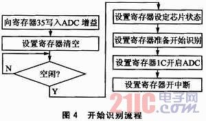 、坶_始識別。設(shè)置幾個相關(guān)的寄存器,即可開始語音的識別。圖4是相關(guān)的流程。ADC通道即為麥克風(fēng)輸入通道,ADC增益也就是麥克風(fēng)音量,可設(shè)定值00H~7FH,建議設(shè)置值為40H~6FH,值越大代表MIC音量越大,識別啟動越敏感,但可能帶來更多誤識別;值越小代表MIC音量越小,需要近距離說話才能啟動識別功能,好處是對遠(yuǎn)處的干擾語音沒有反應(yīng)。本文中設(shè)定值為43H。