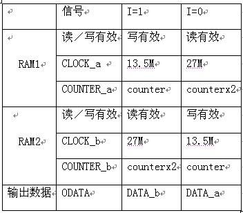 RAM塊進(jìn)行乒乓方式操作信號(hào)的分配表如下:
