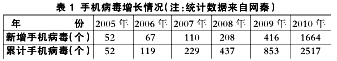 移動(dòng)智能終端與移動(dòng)應(yīng)用商店在向用戶提供豐富多彩的應(yīng)用軟件和數(shù)字內(nèi)容的同時(shí),智能終端病毒、應(yīng)用軟件吸費(fèi)、非法信息傳播等安全問題不斷暴露。移動(dòng)智能終端已經(jīng)成了病毒發(fā)威的新戰(zhàn)場(chǎng),手機(jī)僵尸、給你米等手機(jī)病毒破壞終端功能,惡意吸取資費(fèi),竊取用戶隱私,極大地?fù)p害了用戶利益。據(jù)網(wǎng)秦統(tǒng)計(jì),2010年新增的手機(jī)病毒數(shù)是2004~2009年手機(jī)病毒總數(shù)的近兩倍(見表1),預(yù)計(jì)共感染手機(jī)800萬(wàn)部以上。據(jù)報(bào)道,我國(guó)至少有10家Android平臺(tái)的吸費(fèi)SP或渠道公司,抽樣顯示近40%的Android常見應(yīng)用程序被植入惡意吸費(fèi)代碼。在信息內(nèi)容安全方面,包含色情暴力、反動(dòng)言論等信息的應(yīng)用軟件曾出現(xiàn)在App Store中,危害青少年健康成長(zhǎng),影響社會(huì)穩(wěn)定團(tuán)結(jié)。2010年10月,美國(guó)杜克大學(xué)等對(duì)30款A(yù)ndroid應(yīng)用進(jìn)行分析,發(fā)現(xiàn)其中有三分之二的應(yīng)用通過分享用戶地理定位數(shù)據(jù)或信息的方式侵犯用戶隱私,半數(shù)應(yīng)用未經(jīng)用戶允許將用戶地理定位信息發(fā)送給廣告網(wǎng)絡(luò)或數(shù)據(jù)分析公司。我國(guó)還存在智能手機(jī)終端內(nèi)置應(yīng)用軟件和第三方應(yīng)用軟件涉黃或吸費(fèi)、手機(jī)WAP網(wǎng)站涉黃等問題。另外,黑莓獨(dú)特的加密技術(shù)引發(fā)擔(dān)憂,德國(guó)等紛紛要求監(jiān)控黑莓通信服務(wù)。