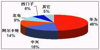 截止2004年底中國NGN設(shè)備市場份額