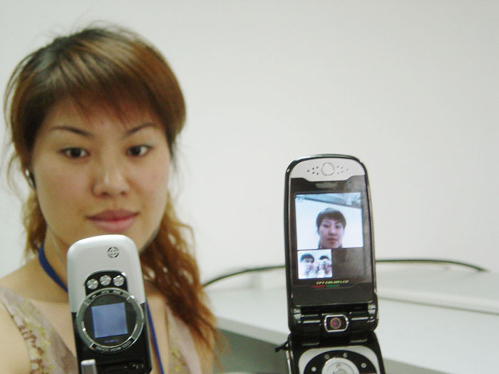 可視電話作為體現(xiàn) 3G 優(yōu)勢的典型業(yè)務,必將成為 3G 的殺手級應用。其類似目前的網(wǎng)絡視頻,通話雙方均可通過可視電話功能在手機屏幕上看到彼此的通話場景,但畫面較網(wǎng)絡視頻更為流暢、清晰。(圖為基于展訊 SC8800 系列芯片平臺的可視電話手機通話中,大圖為對方場景,小圖為自身場景)據(jù)展訊通信 CTO 陳大同博士介紹,早在3月初,展訊 SC8800 系列芯片平臺就已實現(xiàn)了雙向同步視音頻傳輸業(yè)務,在此基礎上又經(jīng)過2個月的調(diào)試,直至該解決方案完全成熟,通話畫面穩(wěn)定、清晰、流暢,展訊才正式將其推入市場。毋庸置疑,這樣的應用方案必將為其客戶的終端產(chǎn)品帶來更多的市場競爭力。