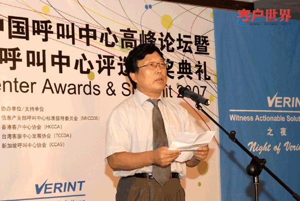 2007年9月18日,北京。[客戶(hù)世界消息]2007(第三屆)中國(guó)呼叫中心高峰論壇暨2007年中國(guó)最佳呼叫中心評(píng)選頒獎(jiǎng)典禮今天在北京舉行;本屆會(huì)議由中國(guó)電子商會(huì)呼叫中心與客戶(hù)關(guān)系管理專(zhuān)業(yè)委員會(huì)(CNCCA)主辦,客戶(hù)世界機(jī)構(gòu)(CCMWorld
