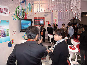 在通信展上,中國移動(dòng)在展場(chǎng)核心區(qū)展示了面向2008年奧運(yùn)會(huì)的奧運(yùn)無線業(yè)務(wù)和全曲下載“音樂隨身聽”,中國聯(lián)通則重點(diǎn)展示了其最具特色的整首音樂下載業(yè)務(wù),吸引了大批觀眾。許多觀眾還在中國移動(dòng)和中國聯(lián)通無線音樂展臺(tái)前,現(xiàn)場(chǎng)聆聽各種動(dòng)聽的歌曲,體驗(yàn)無線音樂的魅力。可以說,手機(jī)音樂成為手機(jī)娛樂業(yè)務(wù)中最受人們關(guān)注的亮點(diǎn)。