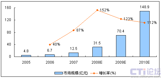 2008年移動(dòng)即時(shí)通信將達(dá)到增幅最高峰,市場規(guī)模實(shí)現(xiàn)31.5億元。2009年開始,預(yù)計(jì)增幅將有所放緩,到2010年,市場規(guī)模將接近150億元。