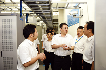 河南洛陽市12580家庭服務(wù)呼叫中心經(jīng)過一段時(shí)間的試運(yùn)行,目前已有200多家家庭服務(wù)業(yè)公司加入該呼叫中心,實(shí)現(xiàn)了保姆、月嫂、保潔、開鎖、家教、婚慶、送鮮花、快遞、送餐和鐘點(diǎn)工等十幾項(xiàng)服務(wù),并將逐步擴(kuò)大到50多項(xiàng)服務(wù)。圖為洛陽市副市長高頌革(右三)在洛陽移動(dòng)公司視察指導(dǎo)工作。