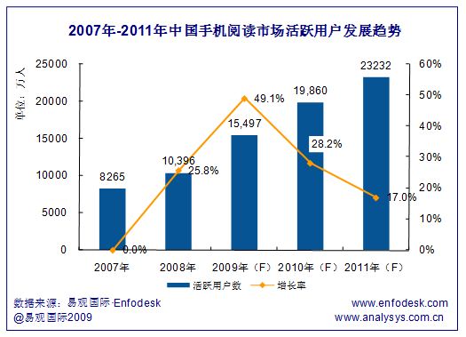 易觀預測:2010年中國手機閱讀活躍用戶數將達2億