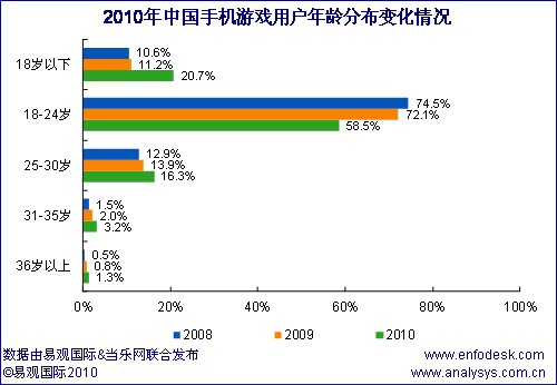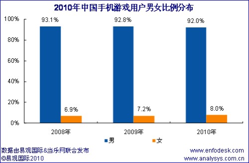 近期易觀國際、當樂網(wǎng)聯(lián)合對手機游戲用戶進行調(diào)研,推出《中國手機游戲用戶研究報告2010》,從中國手機游戲用戶結(jié)構(gòu)特征和用戶行為方面分析手機游戲產(chǎn)業(yè)發(fā)展三大空間: