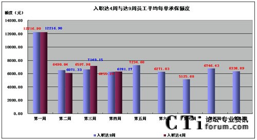 圖5.5 入職達(dá)4周與9周員工平均每單承保額度