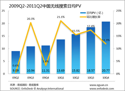 2011年第2季度中國(guó)無線搜索日均搜索量達(dá)5.58億