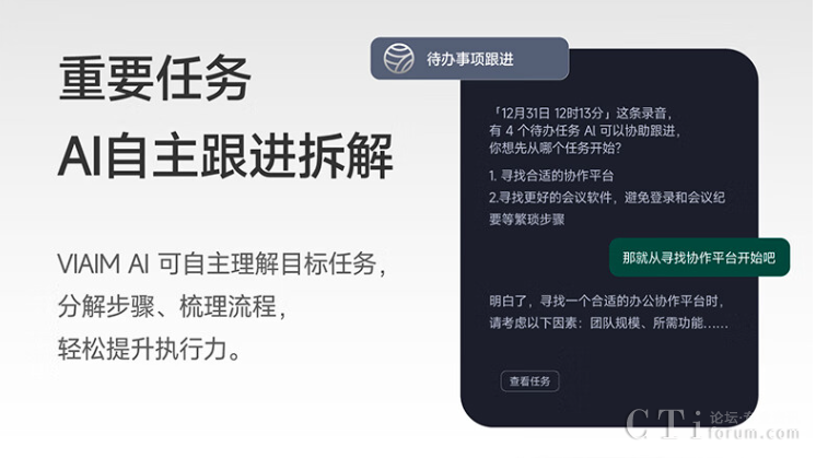 借助VIAIM AI智慧大腦,可一鍵提取會議摘要,海量會議內容瞬間搞定,無需費時手動梳理;待辦事項自動匯總,并可根據(jù)需求生成具體待辦子任務,在執(zhí)行的過程中,科大訊飛降噪會議耳機Nano+會自主理解并分解目標任務、理清流程,輕松提升執(zhí)行力。