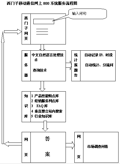 網(wǎng)上800系統(tǒng)的另外一個(gè)特點(diǎn)是自然語(yǔ)句的提問(wèn)方式,客戶可以更準(zhǔn)確、更快捷利用系統(tǒng)找到找到想要的信息;對(duì)于企業(yè)而言,客戶在用這種方式提問(wèn)時(shí),他提的問(wèn)題也是企業(yè)非常重要的,表達(dá)了客戶的需求和想法。提的問(wèn)題越明確,企業(yè)得到的有價(jià)值的信息就越多。在其系統(tǒng)的后臺(tái),客戶提出的各種問(wèn)題都被記錄下來(lái),結(jié)合其它的流量數(shù)據(jù),這些信息被不斷的積累、分析,為其營(yíng)銷決策服務(wù)。而且這種人性化互動(dòng)溝通方式的直接結(jié)果是,瀏覽者首先會(huì)感到自然而不受專業(yè)知識(shí)的約束,他會(huì)更多的去嘗試使用自然語(yǔ)言的方式來(lái)取得服務(wù),增加目標(biāo)客戶對(duì)客戶服務(wù)網(wǎng)站的依賴性。據(jù)悉,該系統(tǒng)僅首月就達(dá)到了十幾萬(wàn)的訪問(wèn)量。