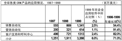 根據(jù)IDC研究,1999年全球CRM應(yīng)用軟件市場正式形成,并快速增長。CRM軟件和服務(wù)收入的年增長率高達71%,其中營銷自動化軟件的增長率高達91.4%。