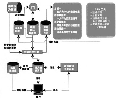 關系數(shù)據(jù)庫系統(tǒng)有三種主要數(shù)據(jù):典型客戶案例的詳細數(shù)據(jù)、對所有客戶的總結性歷史數(shù)據(jù)以及具體活動的數(shù)據(jù)。分析數(shù)據(jù)庫提供輸入數(shù)據(jù),從而得到對客戶的認識,而滿足ETL處理的業(yè)務規(guī)則庫為分析數(shù)據(jù)庫提供派生屬性。這個過程將保持離線分析和實時事件觸發(fā)規(guī)則之間的同步,在動態(tài)建立表格的過程中處理初始化完成后的派生屬性相加,并對相應的元數(shù)據(jù)進行更新,這些處理都是自動實現(xiàn)的。