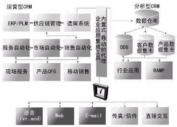 CRM是一種以客戶為中心的業(yè)務(wù)模式,是由多種技術(shù)手段支持的、通過以客戶為中心達到增強企業(yè)競爭力的商業(yè)策略,這一點已在市場上取得了共識。這種認識對許多企業(yè)來說,或許仍覺得有些抽象。CRM要達到的目標,就是在適當?shù)臅r間通過適當?shù)那澜o適當?shù)目蛻籼峁┻m當?shù)漠a(chǎn)品和服務(wù),這不是憑一種技術(shù)手段就能夠?qū)崿F(xiàn)的。美國調(diào)研機構(gòu)Meta Group把CRM分為三類(如圖1所示):一是與企業(yè)業(yè)務(wù)運營緊密相關(guān)的運營型CRM。運營型CRM即所謂的前端辦公室應(yīng)用,包括銷售自動化、市場自動化、服務(wù)自動化等應(yīng)用,以及前端辦公室和后端辦公室的無縫集成。二是以數(shù)據(jù)倉庫為基礎(chǔ)、實現(xiàn)統(tǒng)一客戶視角的分析型CRM。分析型CRM與數(shù)據(jù)倉庫密切相關(guān),運用數(shù)據(jù)挖掘、OLAP、交互查詢和報表等手段,了解客戶的終身價值、信用風險和購買趨向等。三是基于多媒體聯(lián)系中心、建立在統(tǒng)一接入平臺上的協(xié)作型CRM。協(xié)作型CRM是為客戶交互服務(wù)和收集客戶信息提供的各種渠道及聯(lián)系的手段。