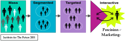 首先,互聯(lián)網(wǎng)的出現(xiàn)改變了營銷的概念,為大規(guī)模定制創(chuàng)造了空前的機遇。隨著富裕而又有辨別能力的中產(chǎn)階級的逐漸壯大,預(yù)先營銷的期望以及針對個人的解決方案日益成為一種標準。從記住他們的行為&偏好并為他們發(fā)送相關(guān)產(chǎn)品信息 (例如Amazon.com) …到幫助他們得到自己理想中的產(chǎn)品 (例如Dell.com,) ,CRM觀念的關(guān)鍵之處就在于為客戶提供符合他們需求的產(chǎn)品/服務(wù)而不是向他們推銷你的東西;ヂ(lián)網(wǎng)使你能夠與客戶建立學習關(guān)系,從銷售轉(zhuǎn)移到解決問題。互聯(lián)網(wǎng)上的CRM已經(jīng)上升到了另一個高度。